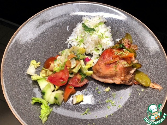 Можно сделать рис (на гарнир)с цедрой лайма и кинзой, но это по желанию.