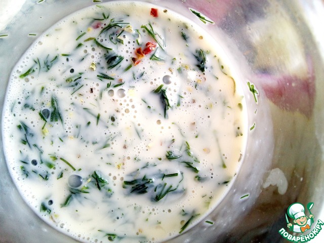 Яйца взбить с солью и специями по вкусу ( у меня итальянские травы), добавить молоко и зелень ( у меня укроп).