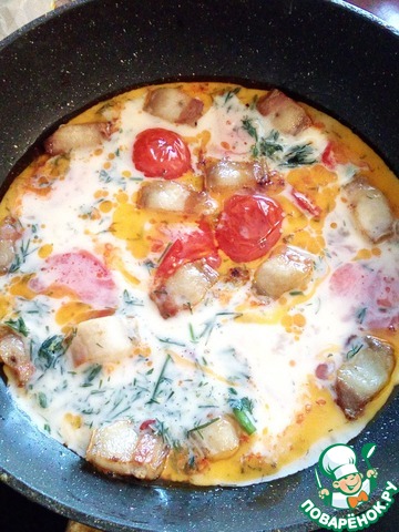 Омлет с помидорами и жареным салом