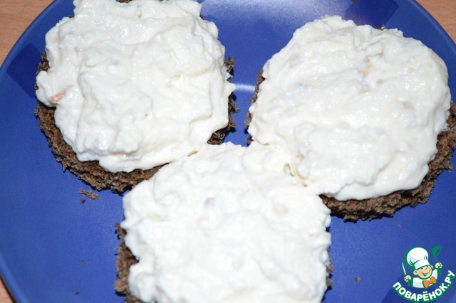 На хлеб выложить толстым слоем творожно-ореховую массу.