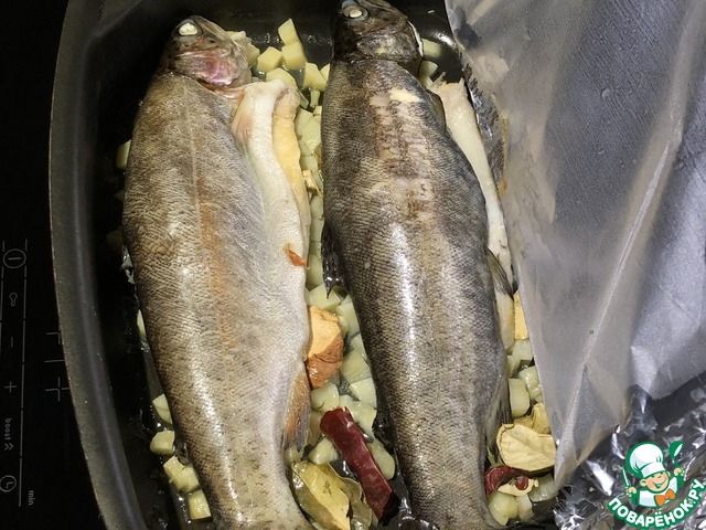 Выкладываем на тарелку готового сибаса, аккуратно уберите приправу - корешки и листики не годятся для еды)