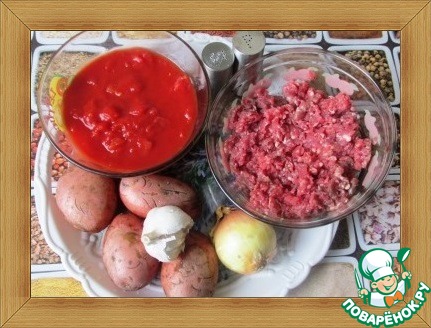 | Это блюдо очень любит мой муж, так готовила его бабушка и мама, которые родились и большую часть своей жизни прожили на юге России в славном городе Таганроге. Правда, там это блюдо называется простенько и элегантно - "соус", и готовят его чаще всего со свининой. Свинину я благополучно забыла вынуть из морозильника, а вот говяжий фарш тут мне и подвернулся. Простое, совсем не хлопотное и вкусное блюдо к обеду. Угощайтесь! |