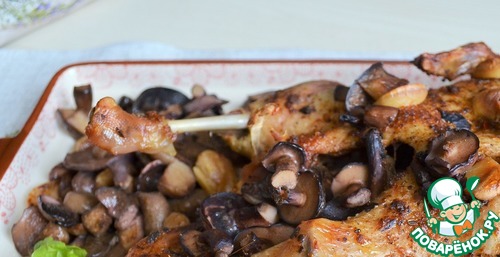 | Затевала утку с гречкой и жареными грибами, но на глаза попалась банка маринованных маслят. Рецепт молнией промелькнул в голове, и не зря. Хрустящая утиная корочка и хрустящие маринованные маслята соединились в один букет вкуса. Блюдо вышло неизбитым, пикантным, смело можно подать и на праздничный стол. Угощайтесь. |