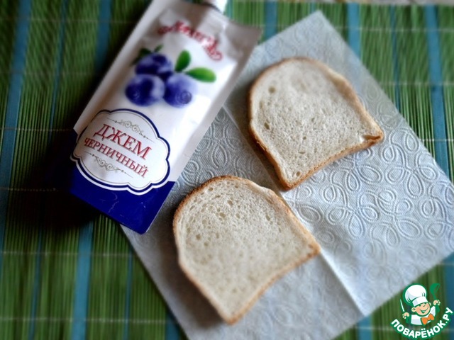 Для тоста понадобятся 2 куска хлеба и джем Махеевъ "Черничный"