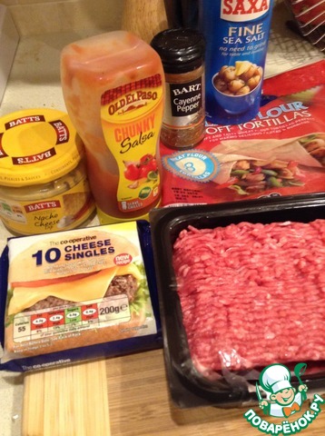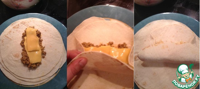 Фарш должен быть горячим, поэтому в процессе скручивания буррито он должен стоять на горячей плите.