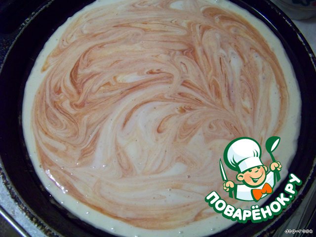 Взбиваем миксером. Тесто получается как сметана, жидкое. Выливаем в смазанную маслом чугунную сковородку.