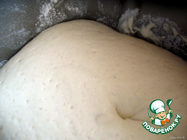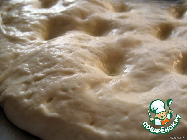 Опять покрыть пленкой и оставить для третьего подъема на час-полтора. Сделать пальцами небольшие углубления.