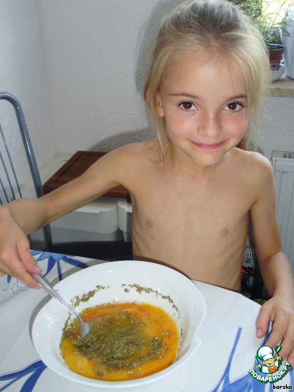 Смешать яйца с приправами (у меня - смесь итальянских трав)