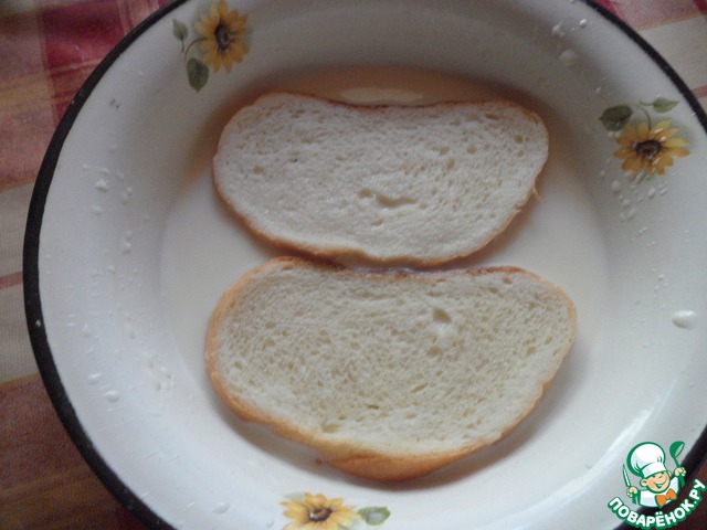 Нарезать 10 ломтиков батона. обмакнуть каждый кусочек, быстро переворачивая, в молоко с двух сторон.