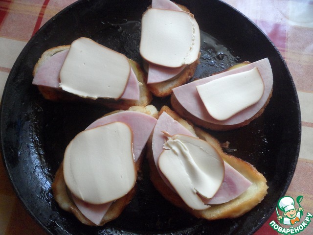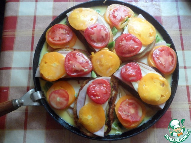На него кружочек копченого сыра. Именно копченый сыр здесь придает особую подкопченную нотку, которая пропитывает все блюдо особым ароматом и делает похожей по вкусу на пиццу! Без него вкус получится менее ярким и вкусным.