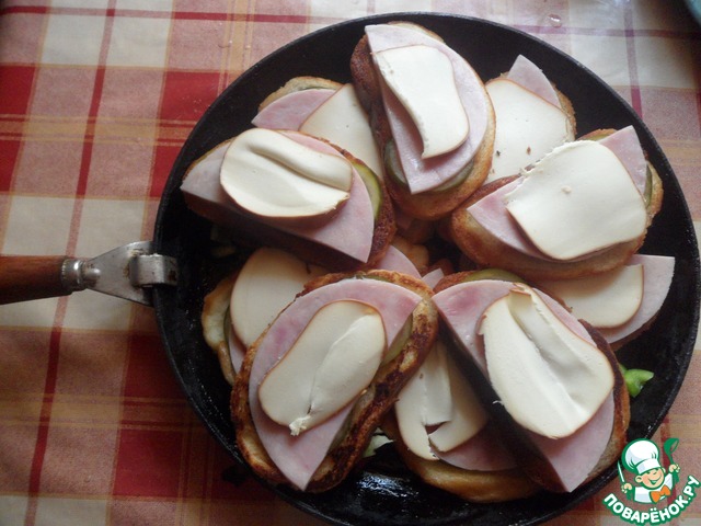Сверху выкладываем следующий слой гренок и всю начинку повторяем, как указано выше.