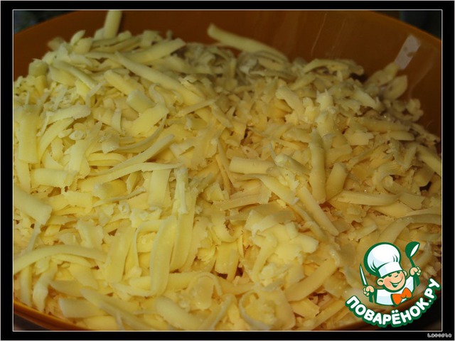 Трем сыр на крупной терке, помидоры нарезаем кружочками.