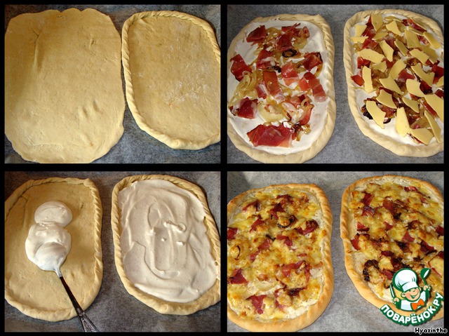 | Рецепт с сайта gotovimdoma. ru, очень понравился такой вариант лукового пирога, конечно, кое-что изменила "под себя". Удобно тем, что можно заморозить эту пиццу, а при необходимости разогреть. Кстати, после разморозки мне понравилось еще больше - тесто становится особенно хрустящим. |