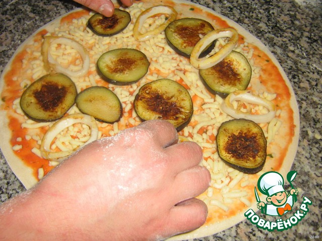 Пицца с баклажанами и кальмарами