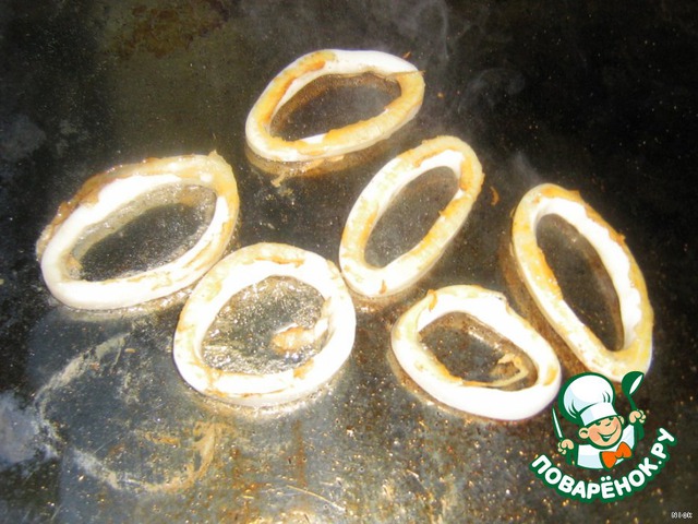 Аналогично выкладываем кальмары.
