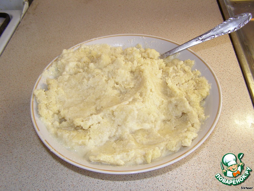 Распределяем полученное "тесто" по дну формы (диаметр 26 см), застеленной пергаментом.