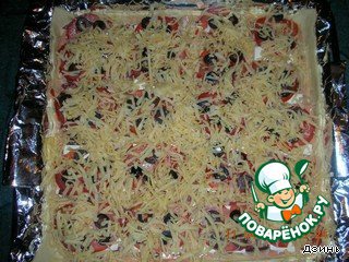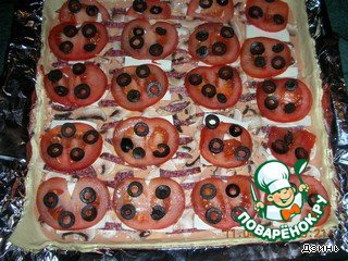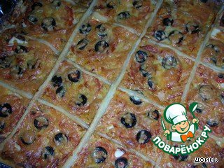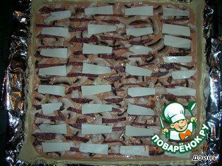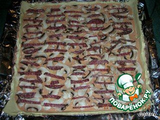 | Пицца на слоеном тесте с фетой, сырокопченой колбасой и грибами - вкусно и пикантно |