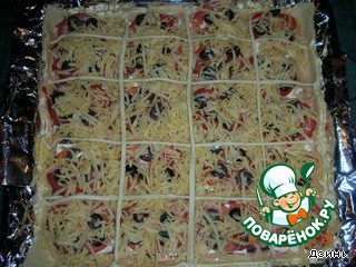 Из оставшегося теста делаем решетку и отправляем в разогретую духовку