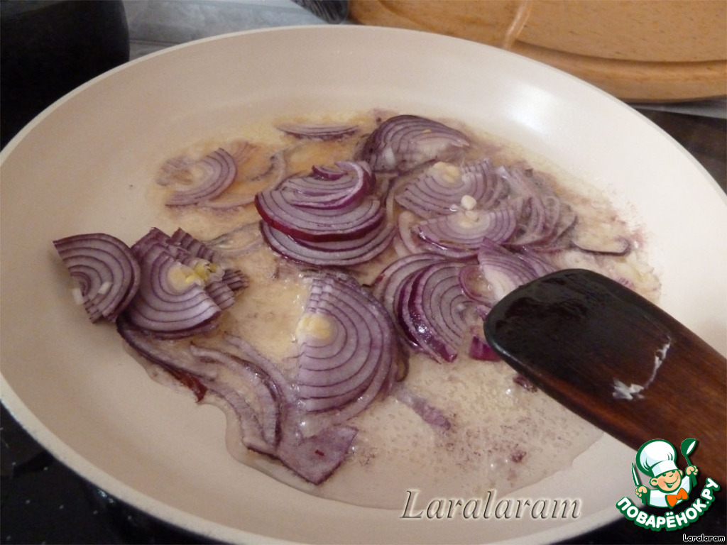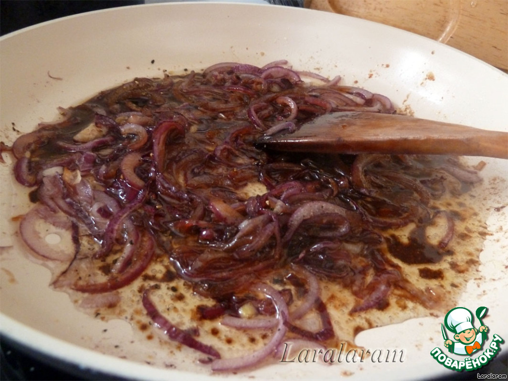 - на него выложить лук со всеми "соками".