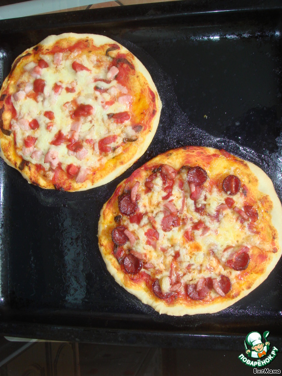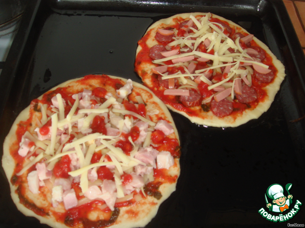 | Эти, по сути, мини-пиццы приглянулись мне не только благодаря вкусному тесту, но и потому, что каждому члену семьи я угодила, начиняя пиццу по пожеланию каждого. Малышне я сделала пиццу сырную с добавлением натурального мяса, детям постарше нарезала колбаски, взрослым - острую, себе любимой - с мидиями. Пиццы разлетались так быстро, что я успела сфотографировать только последние две! )) Попробуйте и вы. |