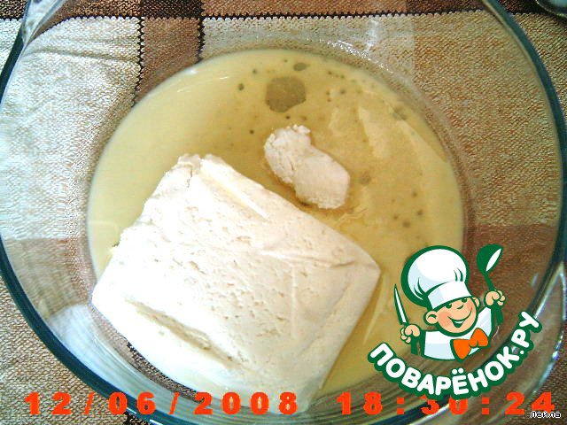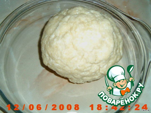 Добавить муку и разрыхлитель. Вымесить тесто и убрать в холодильник на 30 минут.