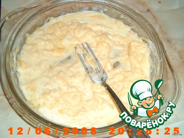 Через 15 минут натрите голландский сыр, добавьте 1 яйцо и майонез, перемешайте и распределите по пицце. Допекайте до готовности (10-15 мин).