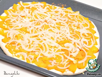 | Очень вкусная и необычная пицца с запеченной тыквой, копченым салом и сырной шубой. Чем-то напоминает вкус мантов с тыквой. |