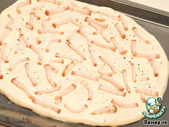 Тесто я замешивала в хлебопечке. Все ингредиенты для теста положить в ведёрко хлебопечки (следуя инструкции), и поставить на режим "пицца".
