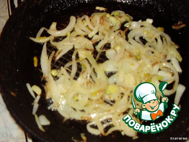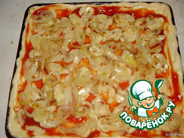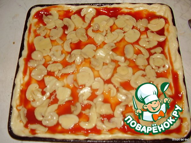 сверху уложите нарезанные ломтиками грибы (у меня маринованные шампиньоны фирмы "Верес" уже нарезанные)