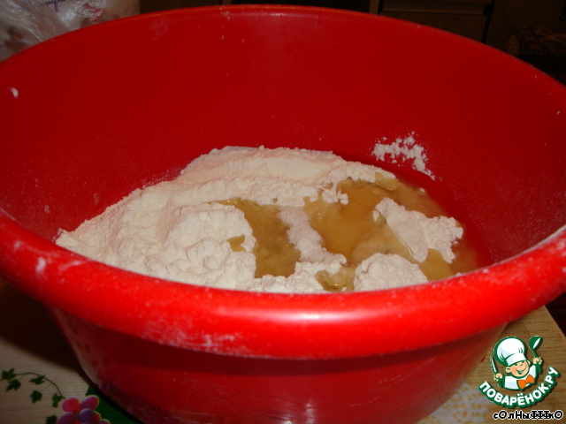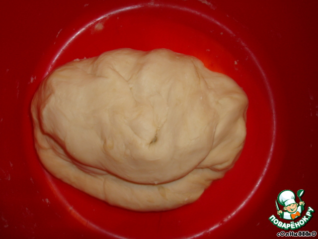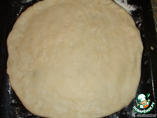 Придаем тесту округлую форму на противне, посыпанном мукой.