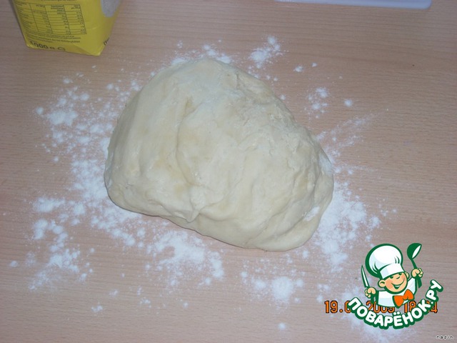 Тесто поделить на 2 части. Одну часть раскатать,(овал 30 на 38 см.) Выложить на противень.