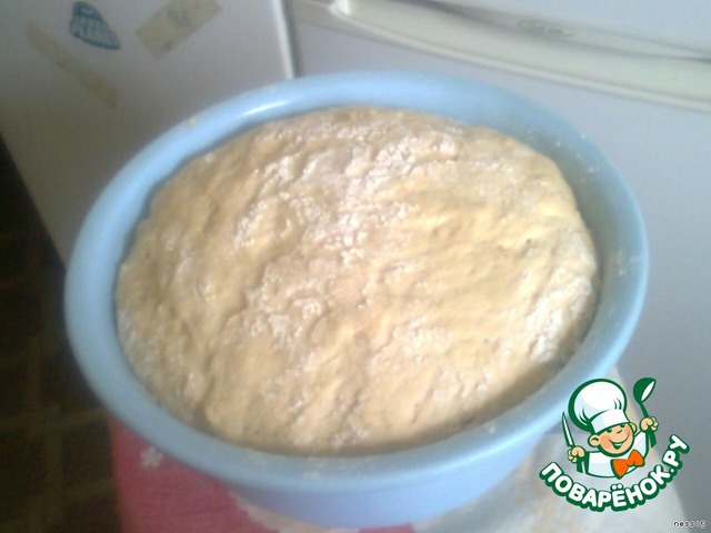 Из воды, соли, сахара, дрожжей, муки и растительного масла готовим дрожжевое тесто, даем ему подняться в теплом месте