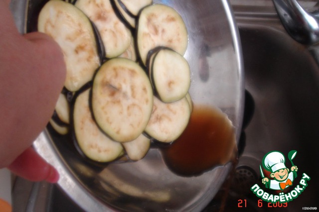 Баклажаны порезать,посолить и на 20 мин поставить под пресс, потом слить воду.
