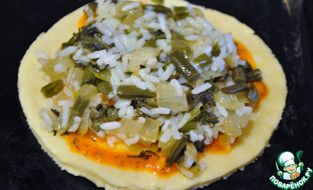 Кладу начинку из папоротника и риса.
