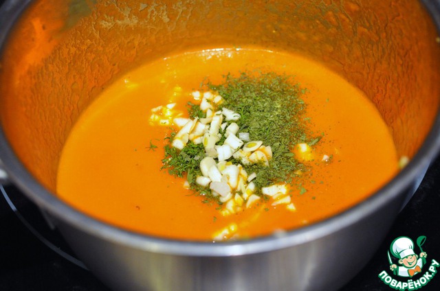 Уварю в сотейнике на 1/4, добавлю сельдерей сушеный и чеснок. Перемешаю, и соус готов.