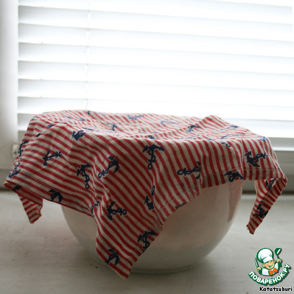 Накрываем тесто салфеткой и ставим в теплое место. Хотя сейчас такое лето - куда не поставь, везде "теплое место". Ожидаем, пока масса увеличится в 2 раза.