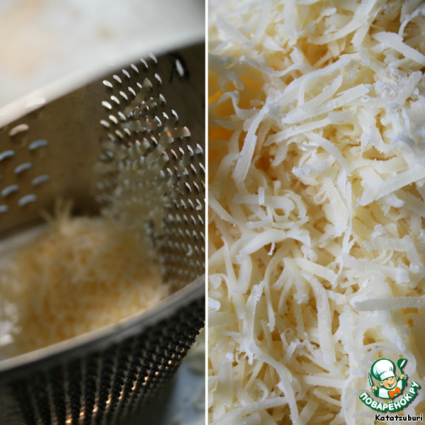 Сыыыыыр! Натираем на терке. 130 грамм - это максимум на такой объем, можно взять меньше.