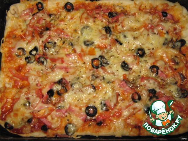| Для всех любителей пиццы! Тонкое тесто с вкусным наполнителем! Обожаю пиццу, рекомендую попробовать приготовить ее моим способом))) Любим с мужем в выходные дни за просмотром кино покушать пиццы))) |