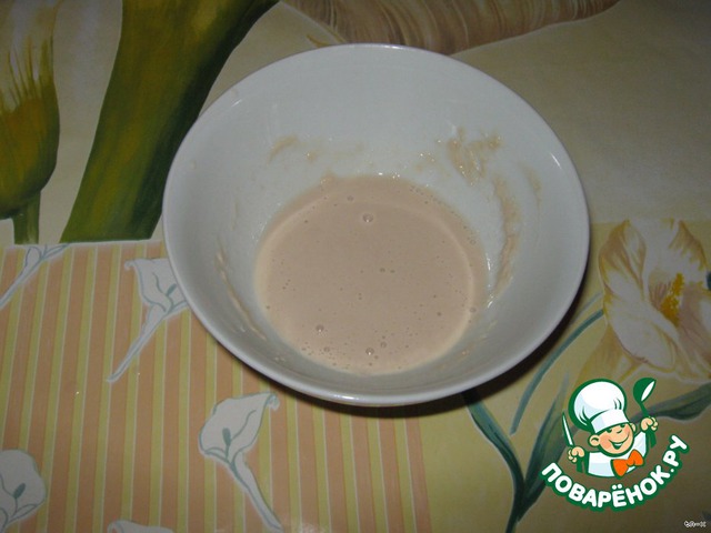 Тесто: в пиалу высыпаем дрожжи, сахар, 2ст.л. муки, 2ст.л. воды, хорошо перемешиваем и ставим в теплое место для поднятия на 20-30 мин.