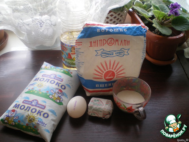Разведите дрожжи в молоке. Добавьте 1 яйцо, 3 ст.ложки подс.масла, щепотку соли, 3 стол.ложки сахара.