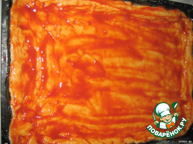 Смажте пышку кетчупом.