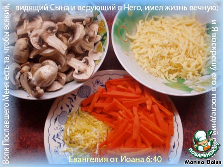 Готовим начинку. Режем соломкой тыкву. Режем дольками грибы. Трем сыр. Трем цедру с лимона.