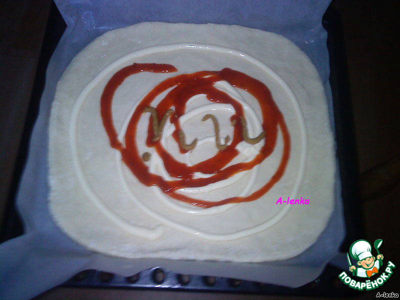 Берем свое любимое тесто для пиццы
