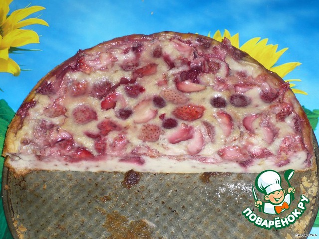 Вылить тесто с клубникой. Выпекать 50 минут при 200* С. Готовую пиццу посыпать сахарной пудрой, кстати, чем больше, тем лучше.