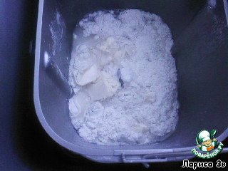 Всыпала в форму дрожжи, муку, соль, сахар и масло. Залила воду.