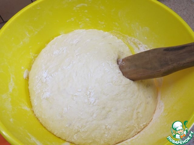 50мл воды + дрожжи +сахар = опара (поставить в теплое место)