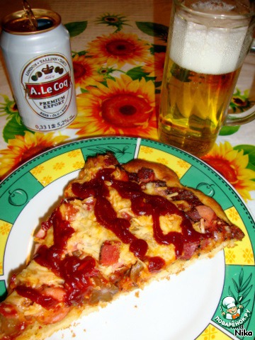 | Острый кетчуп, салями с перцем... Готовил старший сын, а младший ел пиццу и запивал пивом. Ему понравилось. И мне тоже!!! |