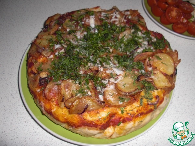 Толстая пицца с картошкой и луком