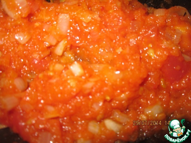 Тесто выкладываем в форму или на противень, предварительно смазать растительным маслом. Обмазываем раскатанную лепешку соусом.