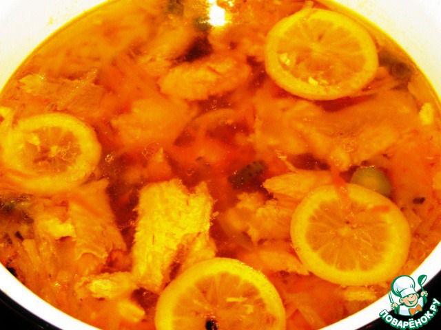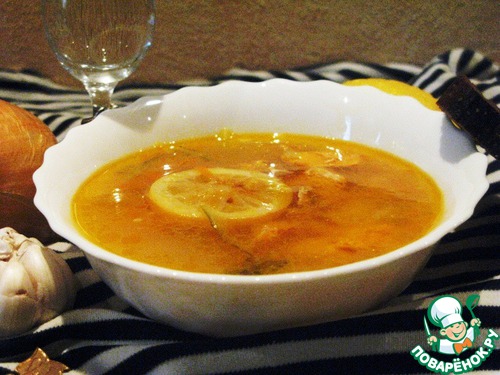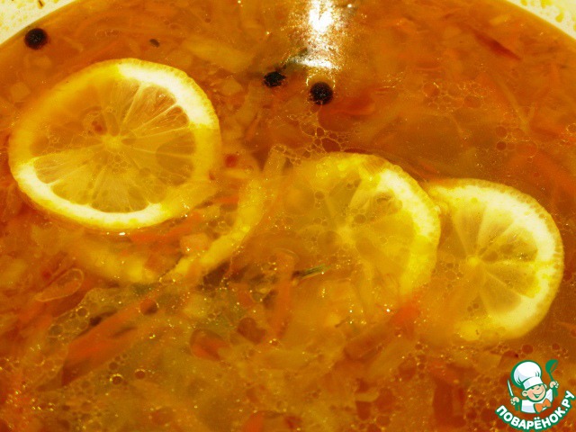 Лимон можно ошпарить кипятком (чтобы не горчил), можно очистить от кожуры (я не очищала), вытереть насухо, нарезать тонкими кружками и тоже добавить в суп за 20 минут до готовности.